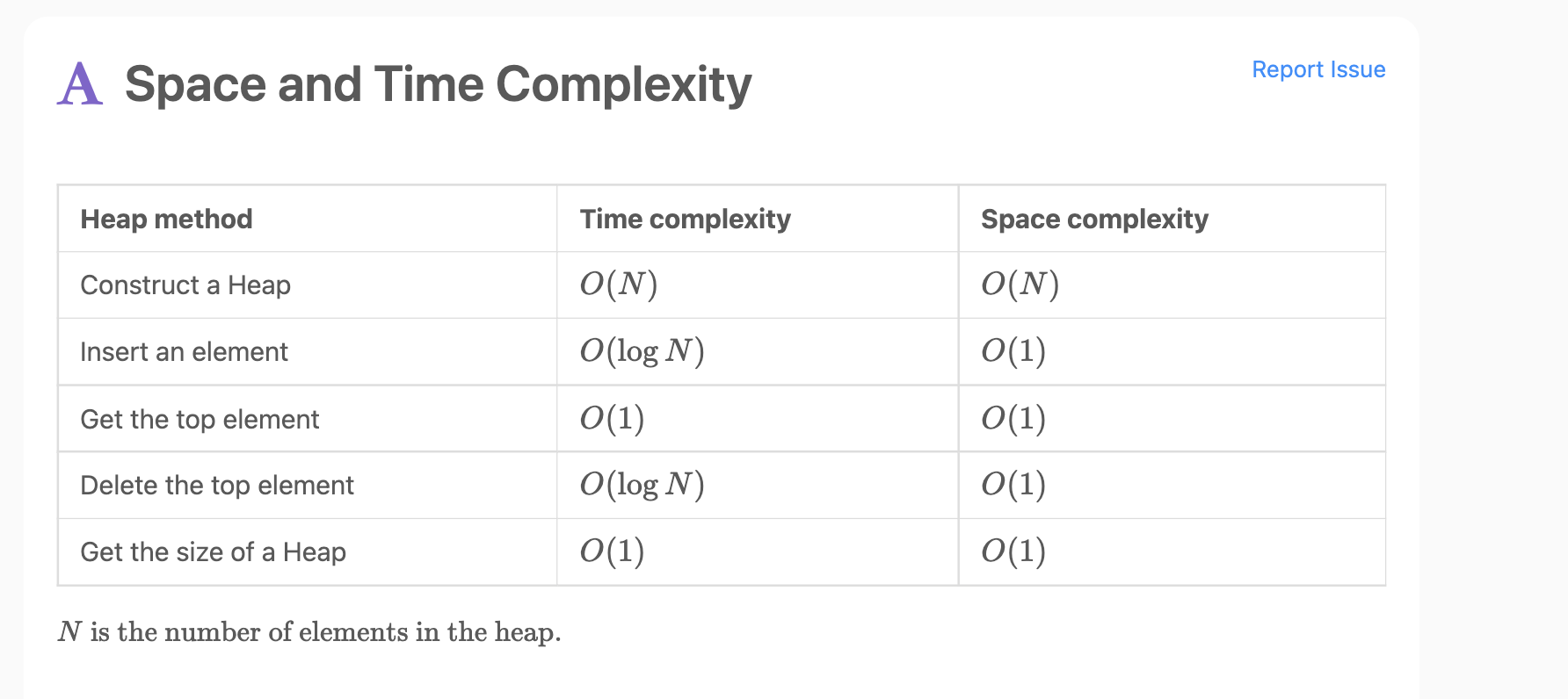 O(N) - Core Idea: Complete binary tree where parent-child relationship follows heap property