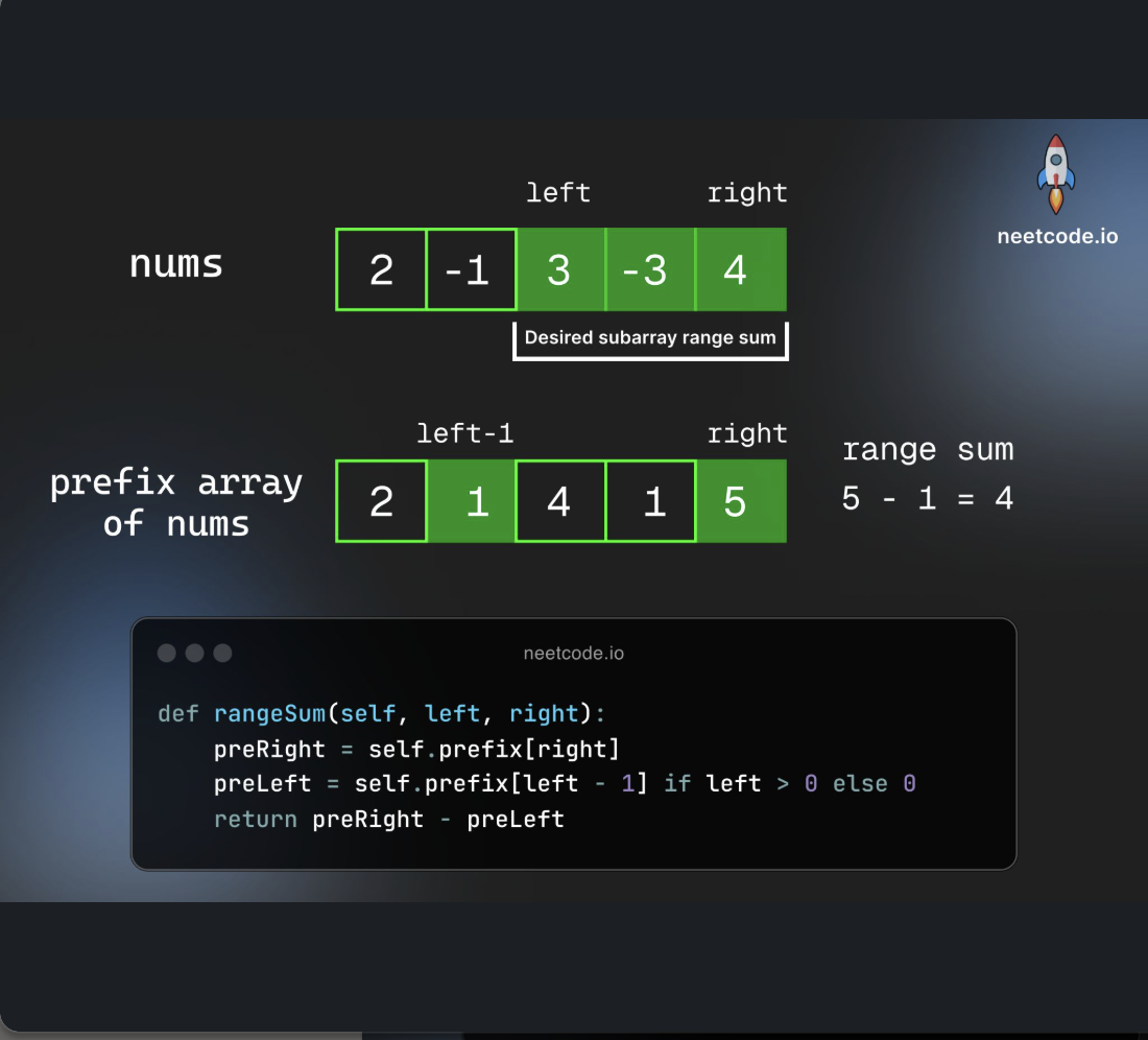- Why sum(l, r) = prefix[r+1] - prefix[l]