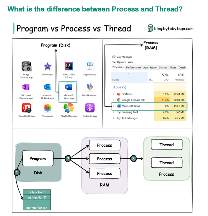 1) Program VS Process VS Thread