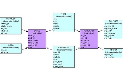 - Galaxy schema contains many fact tables with some common dimensions (conformed dimensions). This schema is a combination of many data marts.