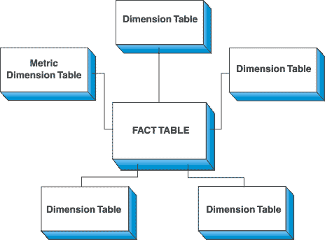 FACT tableas the star center, while others aredimension tablewhich give describe the attribution of FACT table. Dimension tablesare independent with each other