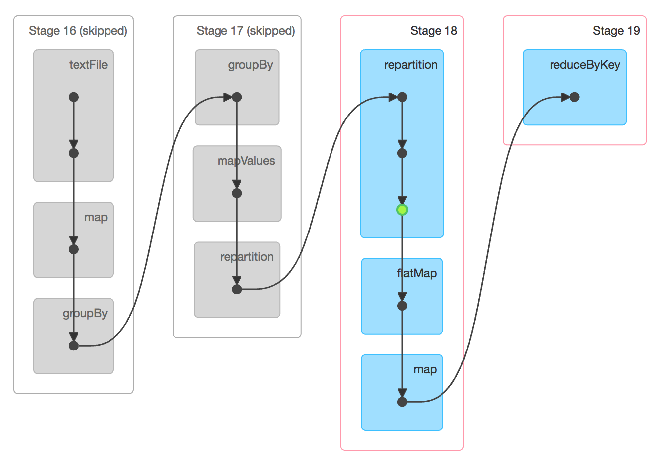 Stages, triggered by anActionsuch as .count(), foreachRdd(), collect(), read() or write(). - An